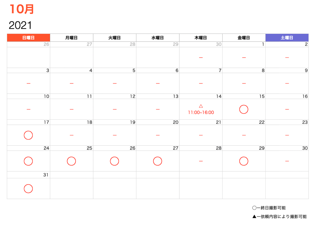 ※11月の土日は全て埋まりまして、12月も残り僅かとなっております。